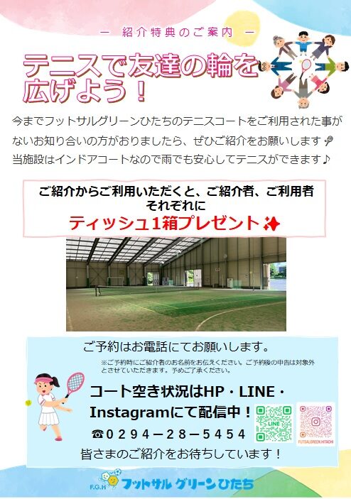 今まで当施設のテニスコートをご利用されたことのないお知り合いやお友達がおりましたらぜひご紹介をお願いします🎾